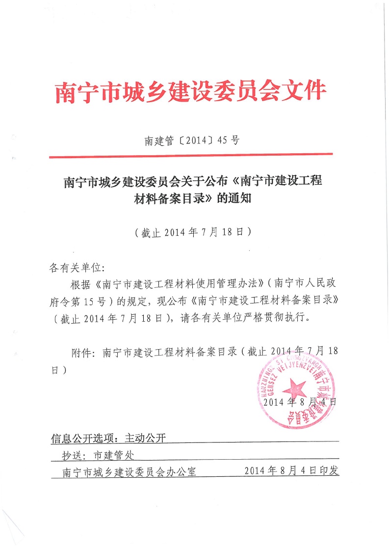 下一篇:南寧市城鄉(xiāng)建設(shè)委員會關(guān)于公布《南寧市建設(shè)工程材料備案目錄》的通知(截止2014年9月17日)